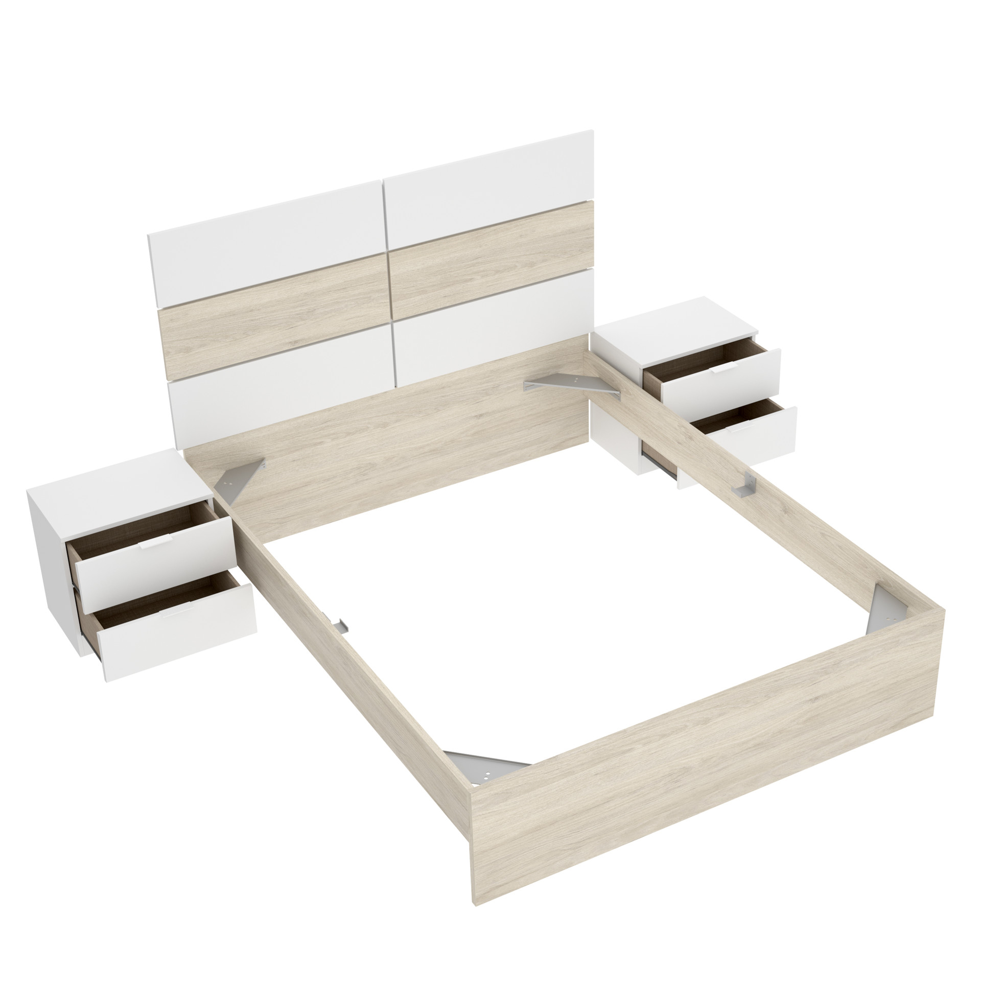 CABEZAL + 2 MESITAS DE 2 CAJONES+ ARO CAMA 135/140X190 + ARMARIO 3P+2CAJ