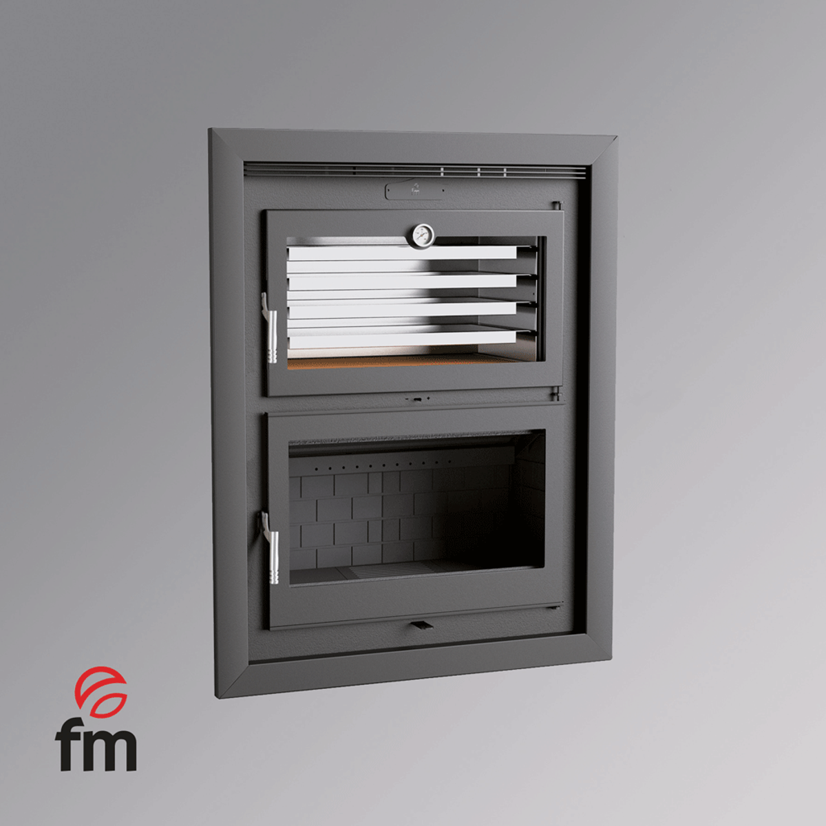 Horno Leña Insertable - Horno Envolvente en Inox. - Bandeja Horno de 60 cm. - Potencia Máxima 13,5 KW. - INTERIOR FUNDICIÓN