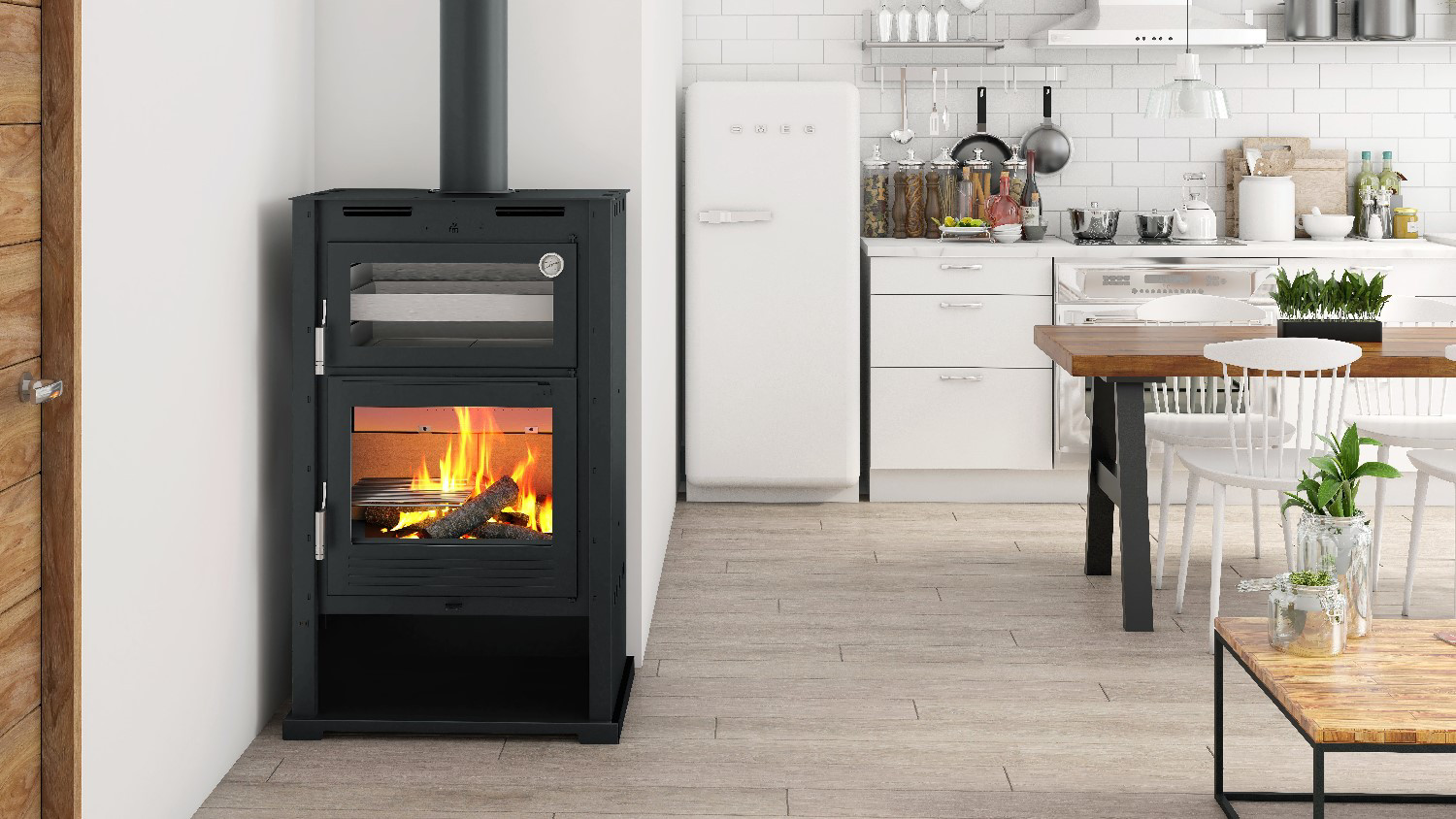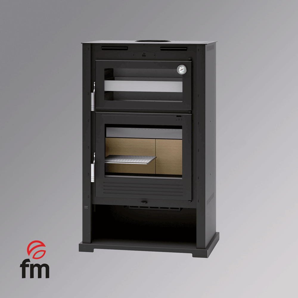 Estufa Leña Frontal - Horno Envolvente en Inox. - Bandeja Horno de 45 cm.- Potencia Máxima 12 KW. - CON TURBINA