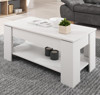 Esta mesa de centro es mucho más que una sencilla mesa de centro, su superficie puede elevarse y se convierte en el lugar perfecto para comer, leer o trabajar cómodamente en el sofá. Puede guardar en su interior libros, controles remotos, revistas, etc., dejándolo todo ordenado. Sin duda, es una mesa muy práctica y funcional. Tiene un diseño rectangular moderno hecho de melamina en brillo que es resistente a los arañazos y fácil de limpiar (con un paño húmedo). Contiene las instrucciones y es muy fácil de montar. Material: - Tablero de partículas de melamina de 16mm - Mecanismos metálicos Dimensiones: - Largo: 100 cm - Ancho: 50 cm - Altura: 43,5/52,3 cm Ver en la imagen. El producto viene desmontado y embalado en una caja.