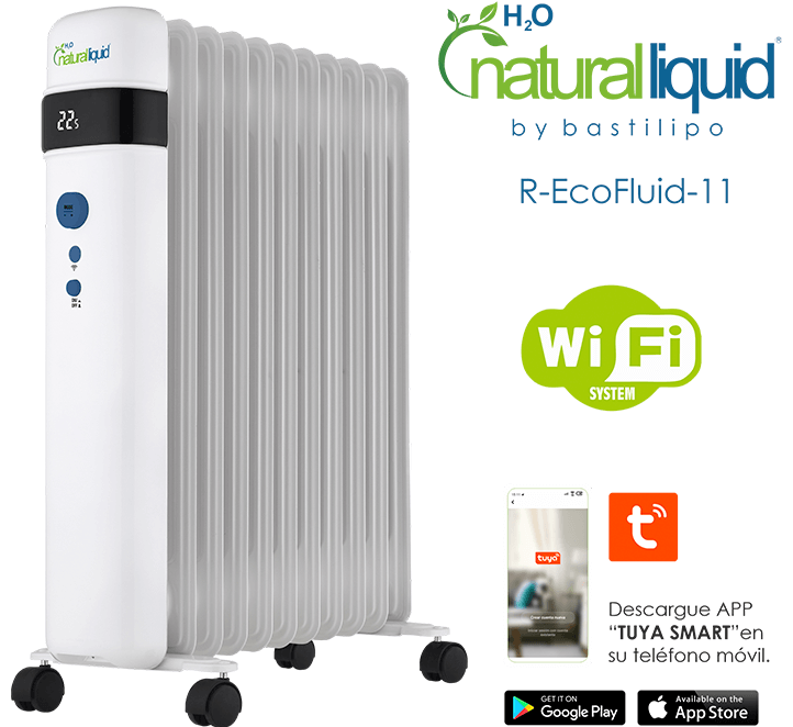 Los radiadores R-Ecofluid con H O Natural Liquid son diseñados 2 conforme a la Normativa EcoDesign ErP 2018 LOT20. Los radiadores eléctricos con H O Natural Liquid están a la 2 vanguardia de la técnica. Su diseño de ultima generación permite disipar mejor el calor, este genera una convección natural sin ningún tipo de motor y sin emitir ruido ni olor. H2O NATURAL LIQUID es un fluido totalmente ecológico y biodegradable que sustituye al aceite mineral del interior de radiadores, sin necesidad de alterar el diseño. Sus componentes básicos son H2O, espesantes de origen vegetal y sales minerales, lo que confieren al fluido mejores características térmicas que el aceite.