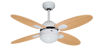 BERMEO BLANCO, Ventilador techo, mando a distancia, 4 palas, 105 cm, Blanco, palas blanco/haya