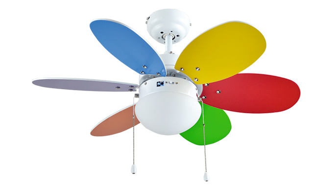 Ventilador techo blanco, blanco / multicolor, mando a distancia, 75 cm, 6 palas reversibles y simetricas,